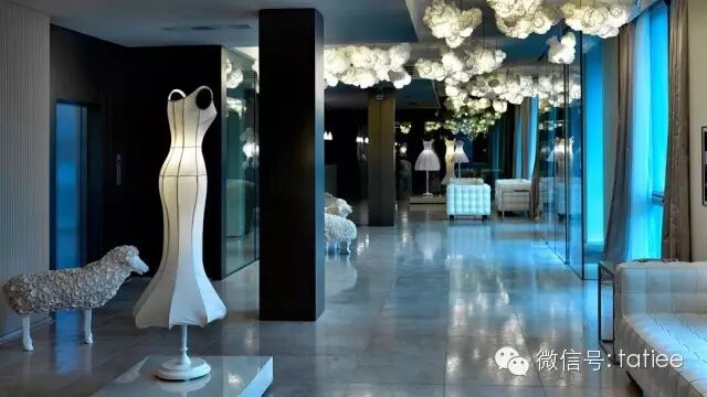 Palazzo Versace的设计全面糅合了迈阿密海滩的传奇与拉斯维加斯纸醉金迷的享乐主义概念。这家酒店地处黄金海岸黄金地段的冲浪者天堂 surfer's paradise,典型的巴洛克建筑风格,对面是著名的5星级酒店喜来登,后面是私家海滩和游艇。2015年3月12日,Versace宣布,将在成都市的核心地段望江楼附近,打造中国第一家 Versace公寓。高度超 220米,计 68层,融合 Versace 标志性设计和中华文化元素。预计将在2017年竣工。开业于2006年的Gucci首家咖啡店,位于米兰闻名遐迩的伊曼纽尔二世长廊内,四周林立着来自世界各地的超级名品店。这里的镇店之宝不是咖啡,而是用来搭配咖啡的Gucci巧克力。这些双G“甜心”是特别邀请赢得多项世界大奖的国际点心大师Ernst Knam设计制作的,标准的立方体,饰有不同的双G图案造型,还有多种口味选择。此外,巧克力的味道也会根据一天中时段的不同而略有变化,上午稍甜,下午微苦。2008年底,伦敦Angel地铁站旁开设了一家由酒吧、饭店、舞厅三部分组成的新社交名店Double Club。这个起初叫“Prada刚果酒吧”的酒吧为了更好地表示刚果和西方艺术交流的平等地位,将名字改成了Double Club。1997年,Ferragamo 家族在意大利佛罗伦萨开设了第一家 Hotel Lungarno,成为进军酒店业的奢侈品牌先驱。酒店位于佛罗伦萨的 Ponte Vecchio,旅居者不仅可以俯瞰 Arno 河畔风光,还可以远眺当地的古迹。2009年,Maison Moschino Hotel在米兰时尚街区 Corso Como 开业,共 72间客房。意大利时尚品牌 Moschino 的创意总监 Rossella Jardin 带领设计团队将酒店设计非常梦幻的风格。甫踏入酒店大堂,奇幻之旅随即开始,纯白色的大堂之內,摆放了以Moschino品牌代表作──灯笼裙形状示人的灯饰,加上羊的雕塑与天花的花案,彻底展示了其超现实主义风格与无线的想象力。65个各有不同特色布置的房间之內,都可以找到如此超现实的气氛,不管是天花板上的大苍蝇吊饰、被树林包围的睡床,还是由鲜红晚装延伸而成的大床,每个细节都展现了创意与做梦的力量,成为时装王国当中最具玩味的住宿之选。
