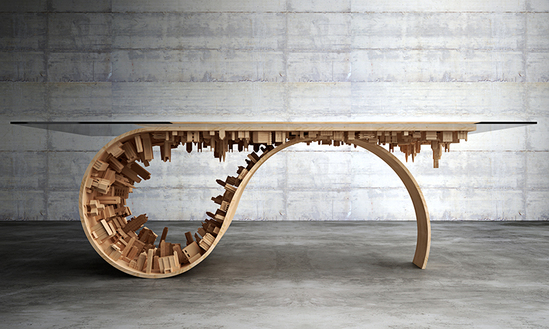 2016年1月初,设计师stelios mousarris设计了一款名为“wave city”的咖啡桌——迅速在designboom(设计邦)读者中走红。这位来自于塞浦路斯的设计师将木制的城市风景折叠,重叠部分作为桌子的表面。该款设计的灵感来自于2010年的电影《盗梦空间》——将看电影的人带入了一个可以随意操纵、控制与调整梦的世界——mousarris的这款咖啡桌描绘了一幅城市景象,经过折叠后看起来好像漂浮在空中一样。