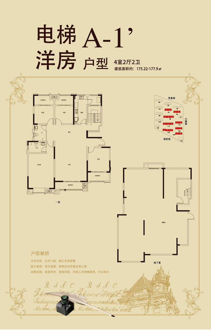 正商书香华府电梯洋房A-1’4室2厅2卫175.22-177.9㎡
