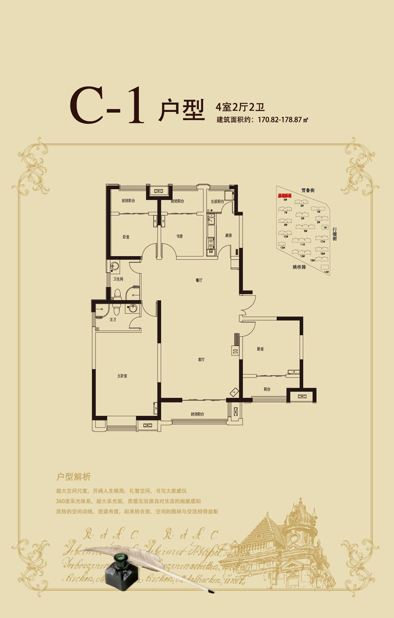 正商书香华府C-1户型4室2厅2卫170.82-178.87㎡