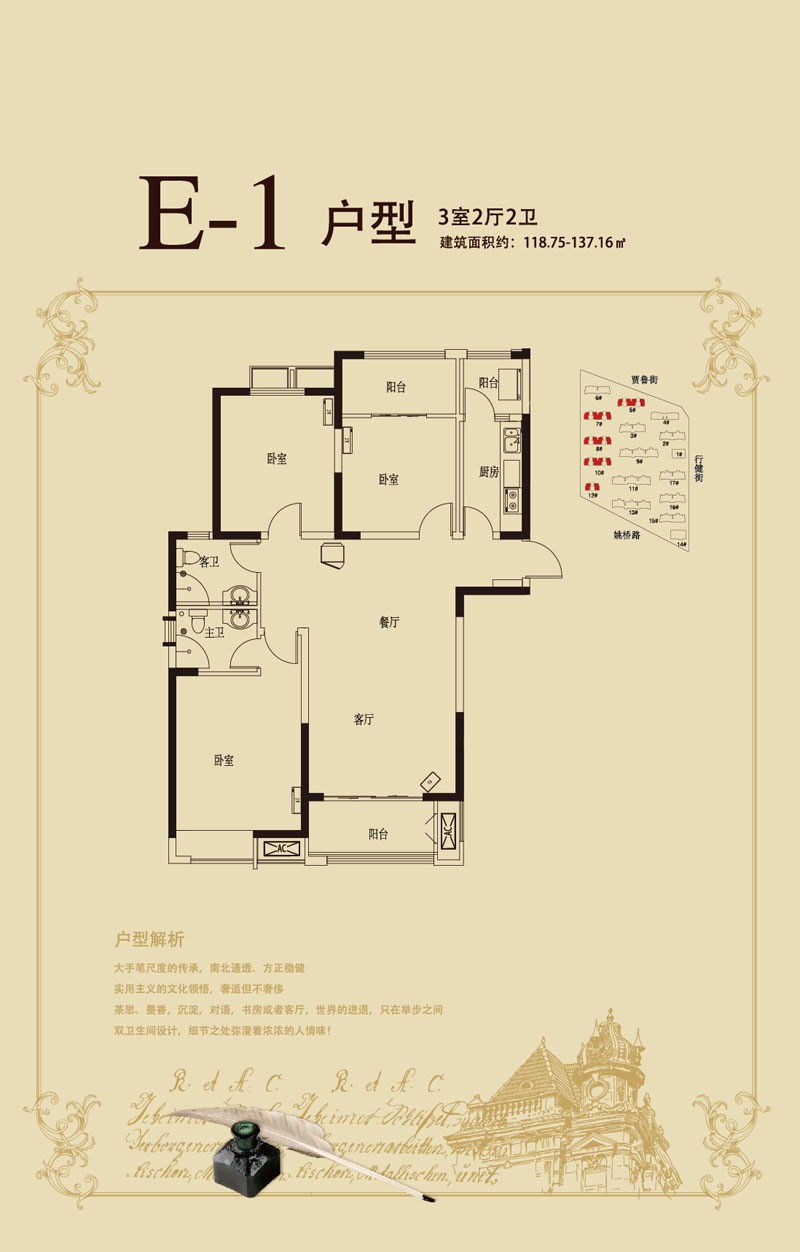 正商书香华府E-1户型3室2厅2卫118.75-137.16㎡