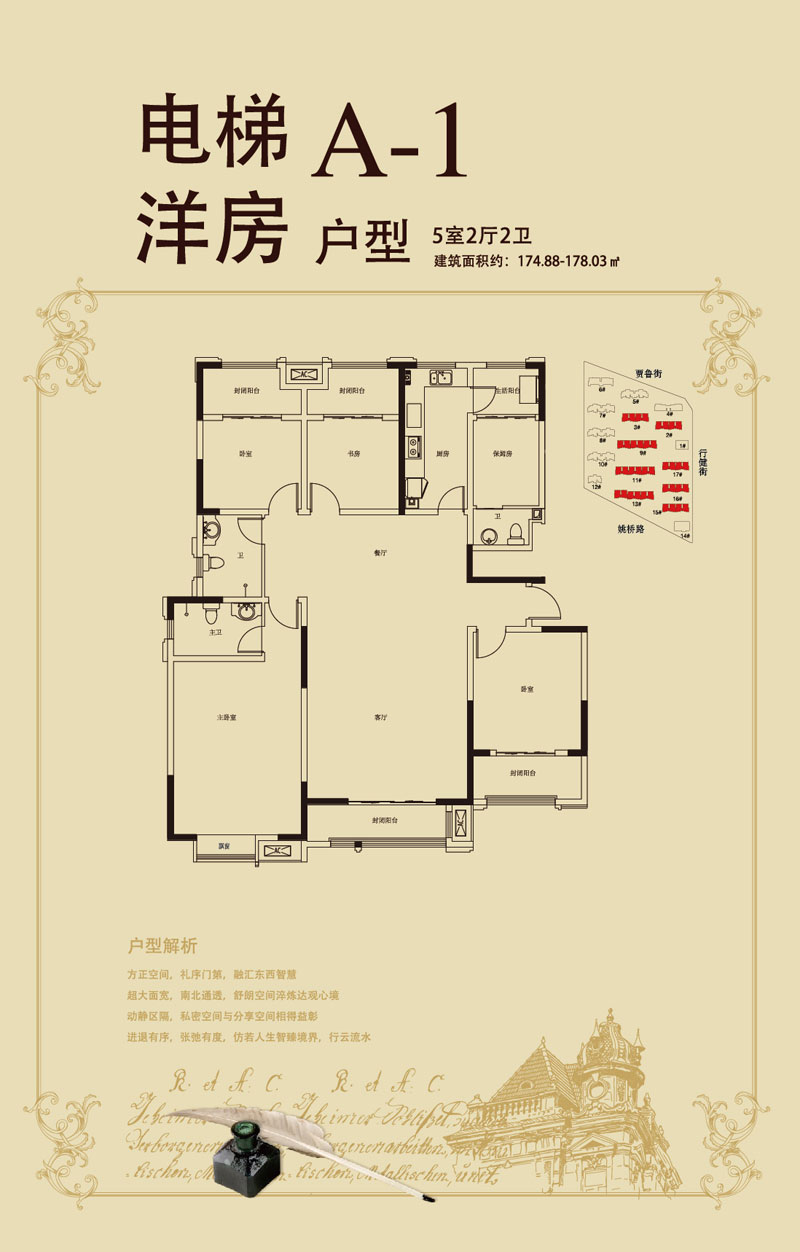 正商书香华府电梯洋房A-1 5室2厅2卫174.88-178.03㎡