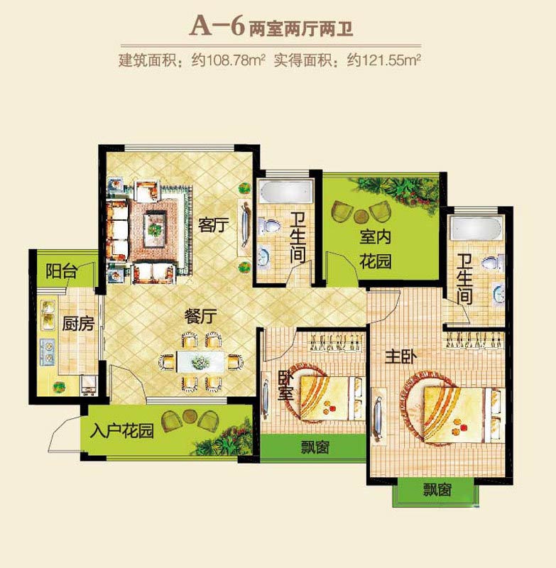 郑东春和景明1#2#楼A-6户型2室2厅2卫1厨-108.78㎡