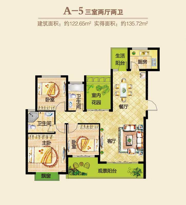 郑东春和景明1#2#楼A-5户型3室2厅2卫1厨-122.65㎡