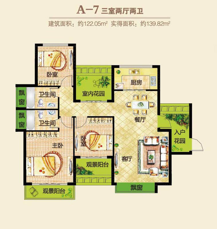 郑东春和景明1#2#楼A-7户型3室2厅2卫1厨-122.05㎡