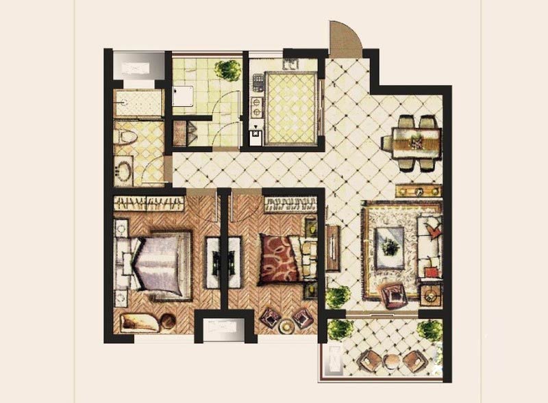 康桥溪桂园D户型2室2厅-82.51㎡