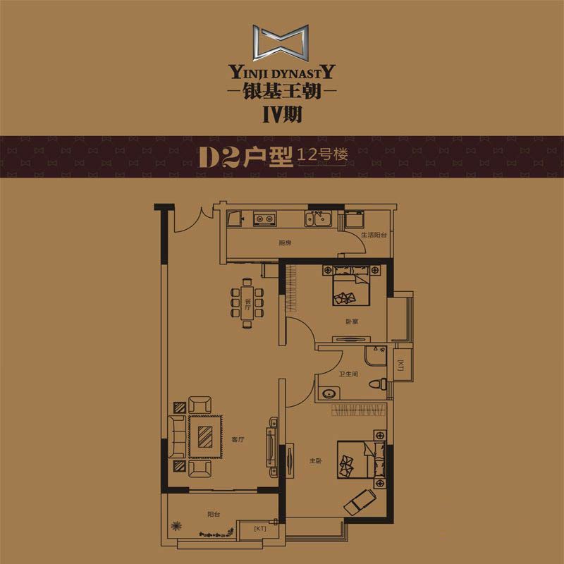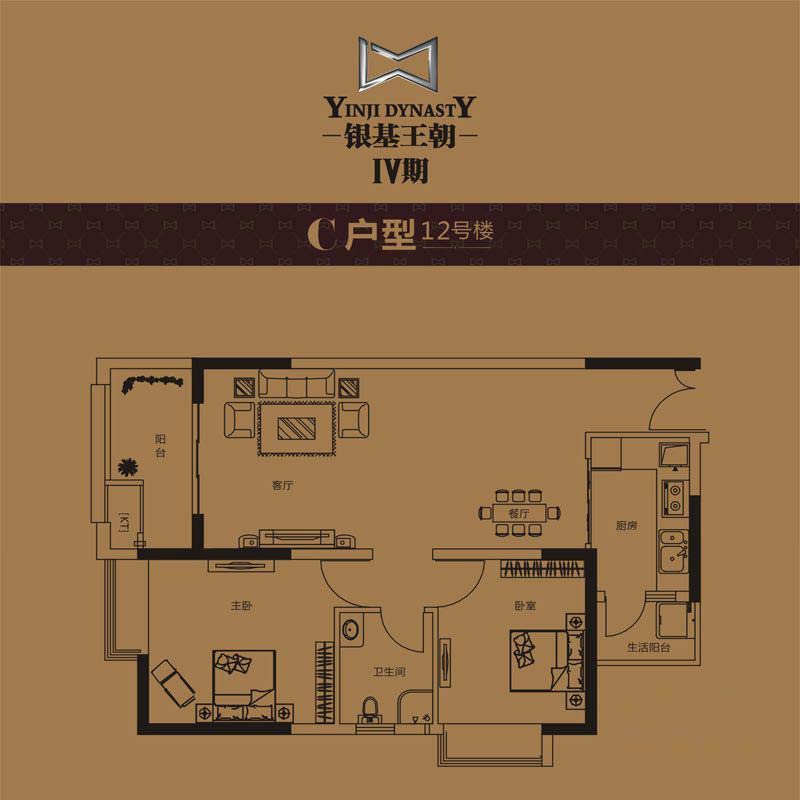 银基王朝12#C户型2室2厅1卫1厨-83.02㎡