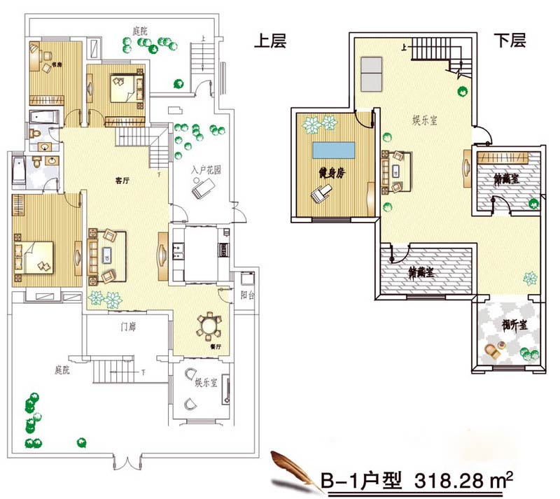 B1户型4室2厅2卫1厨-318.28㎡