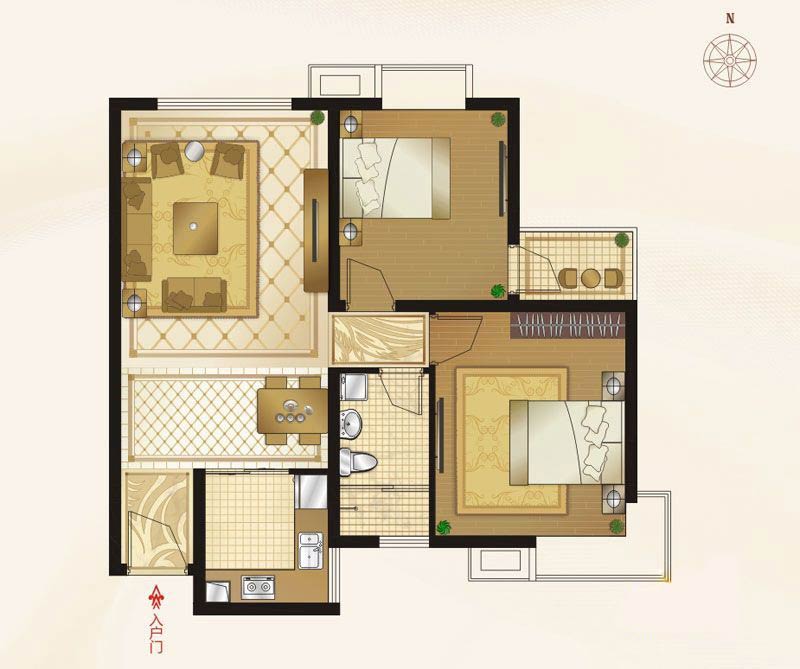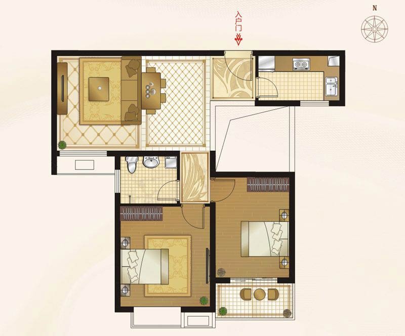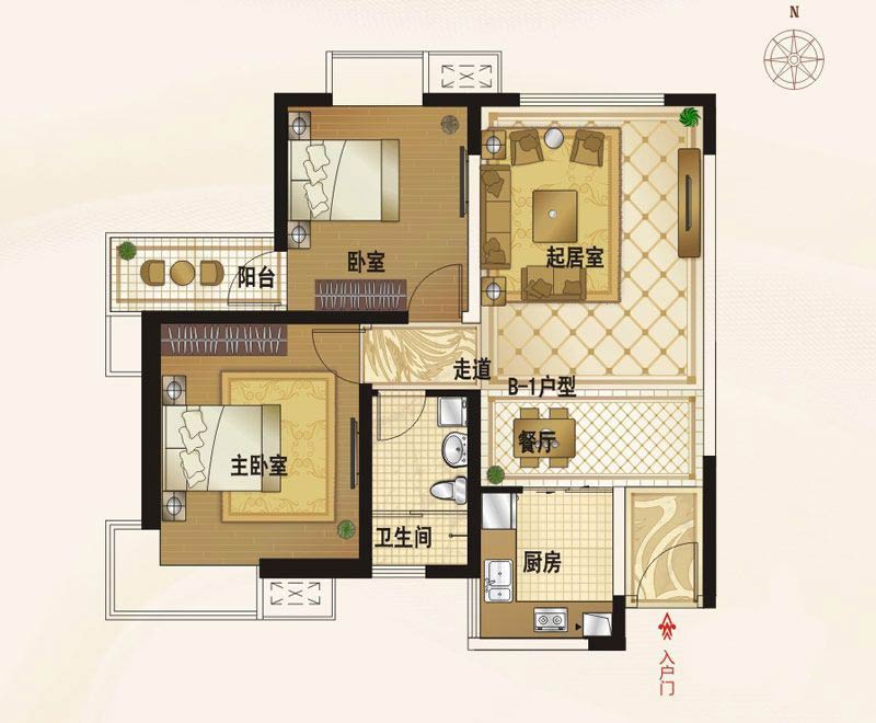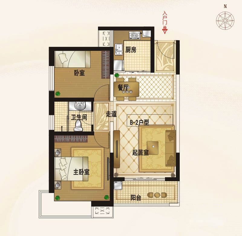 B1-2户型2室2厅1卫1厨-85.54㎡