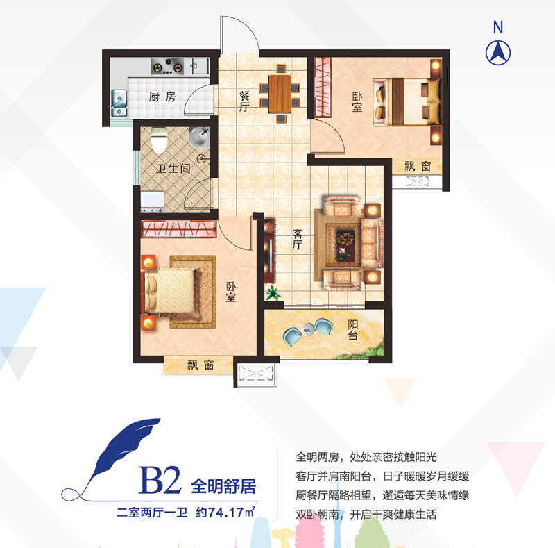 B2户型二室两厅一卫-约74.17㎡