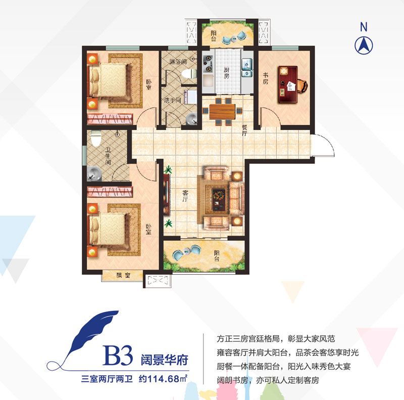 B3户型三室两厅两卫-约114.68㎡