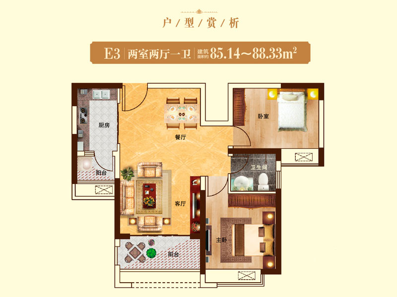 瀚宇天悦E32室2厅1卫1厨-85.14㎡