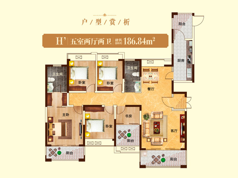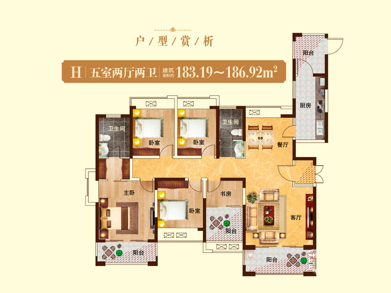 瀚宇天悦H'5室2厅2卫1厨-186.84㎡