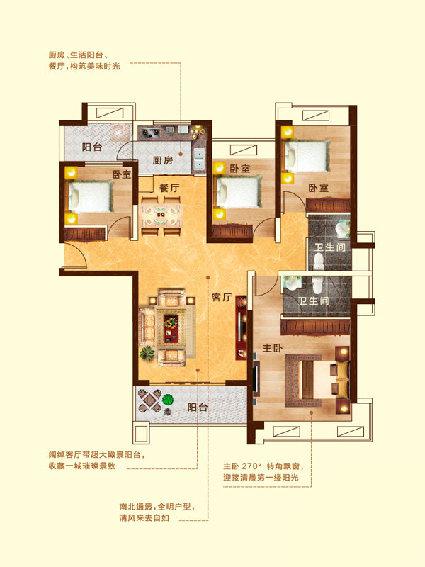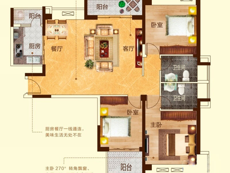 瀚宇天悦C1户型3室2厅2卫1厨-133.09㎡