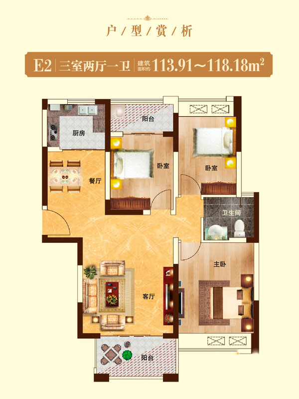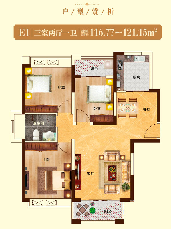 瀚宇天悦E1'户型3室2厅1卫1厨-117.01㎡