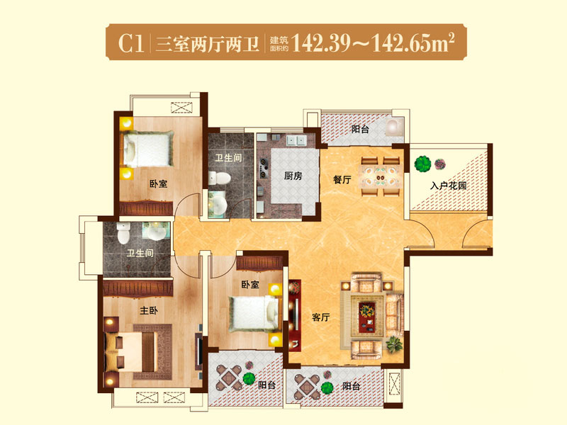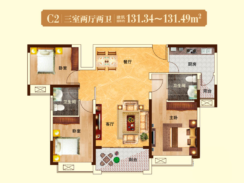 瀚宇天悦C23室2厅2卫1厨-131.34㎡