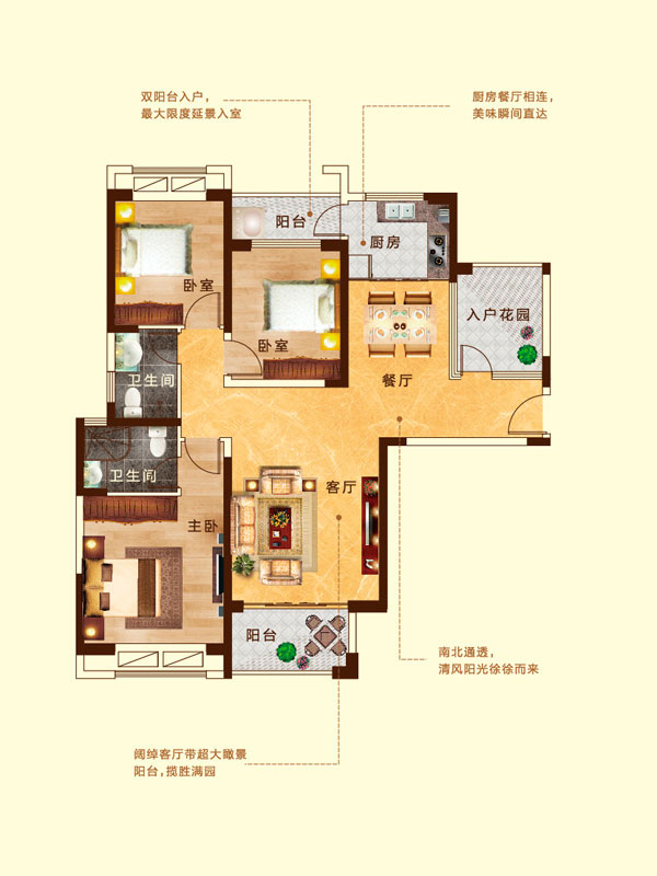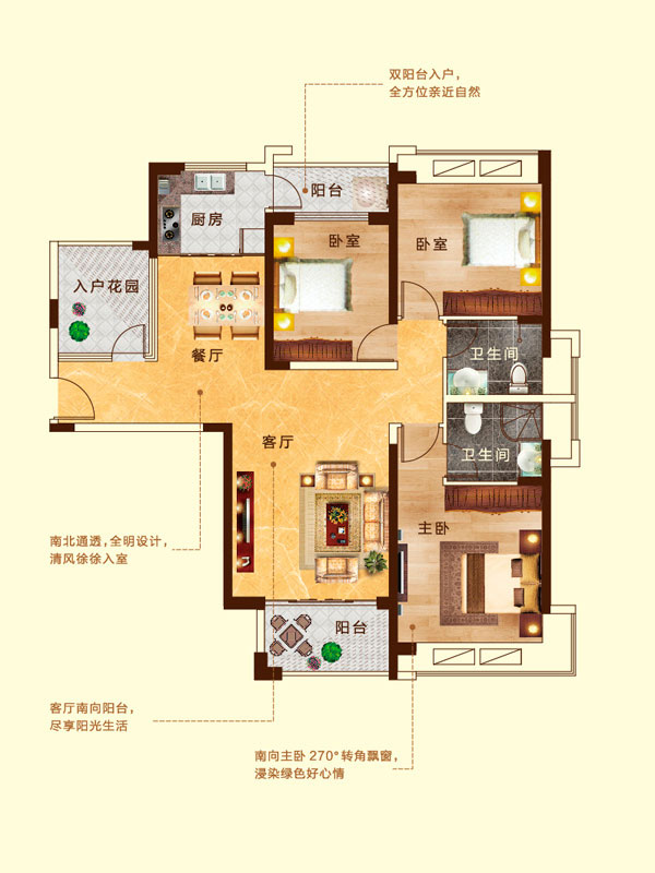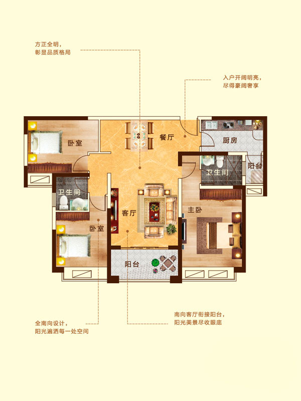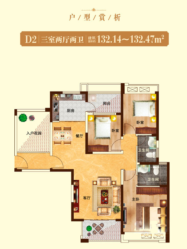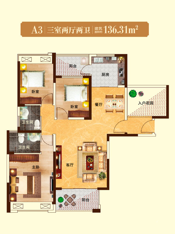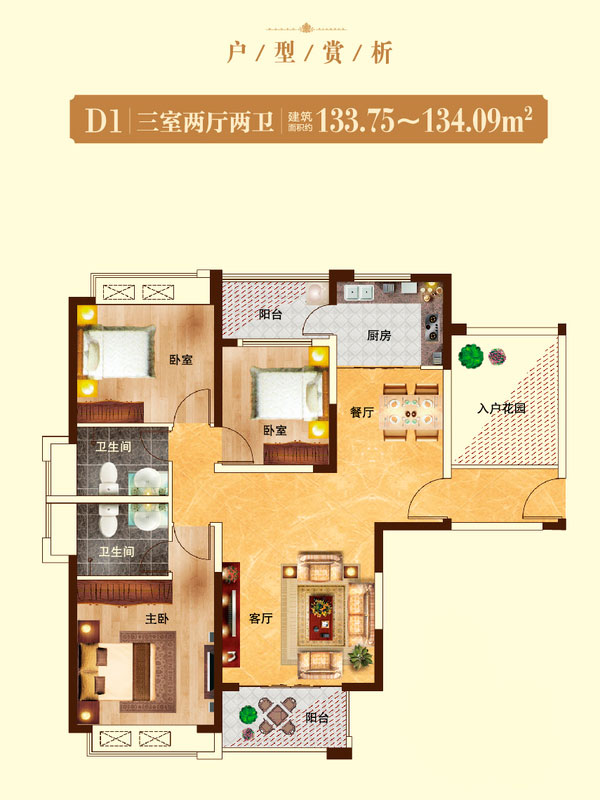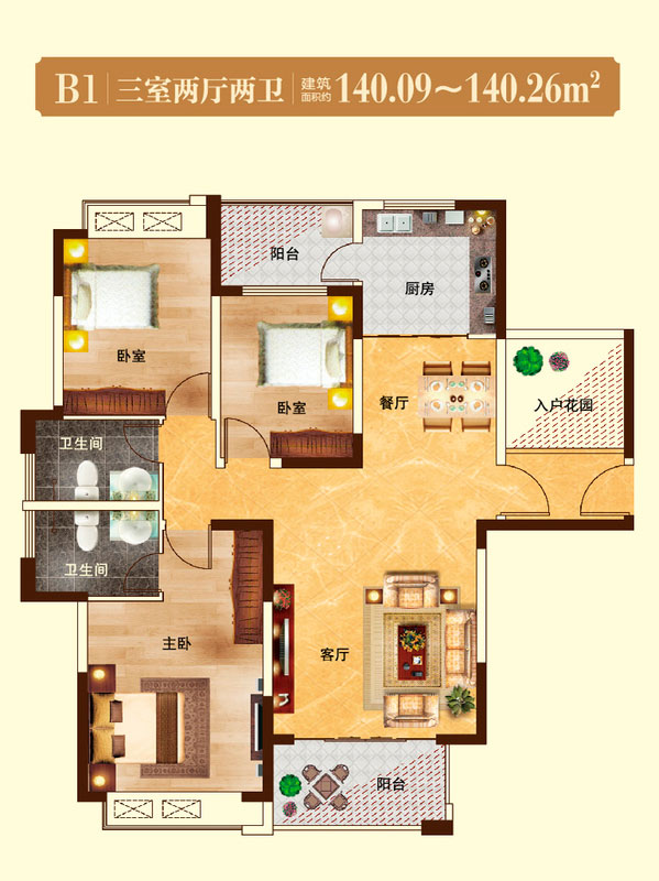 瀚宇天悦B1-1户型3室2厅2卫1厨-131.20㎡
