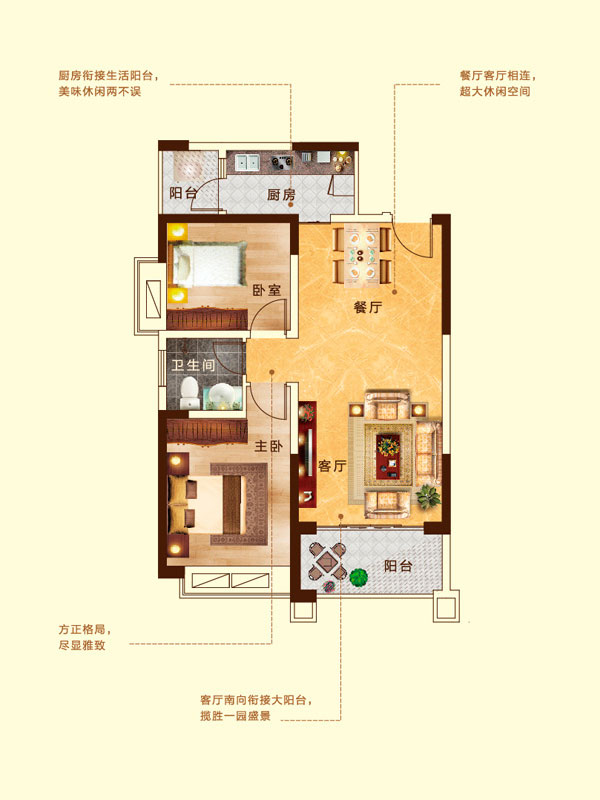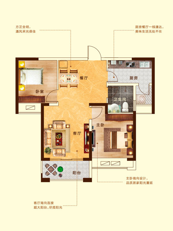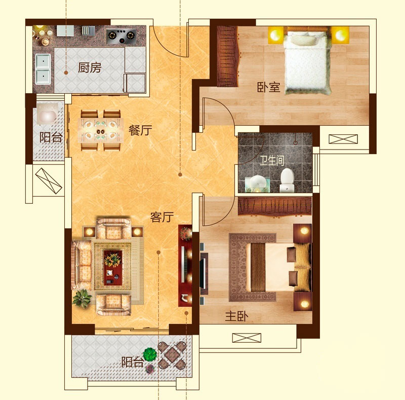 瀚宇天悦E2户型2室2厅1卫1厨-89.59㎡