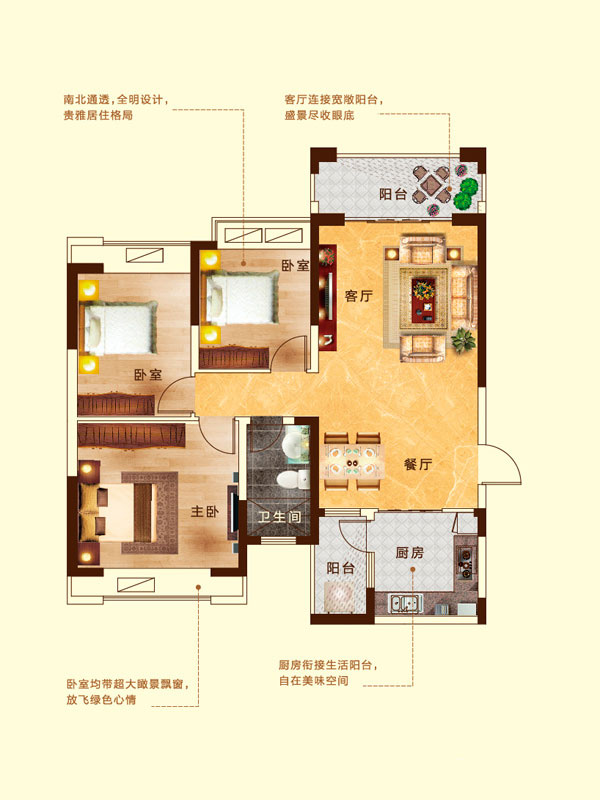 瀚宇天悦D2户型3室2厅2卫1厨-128.42㎡