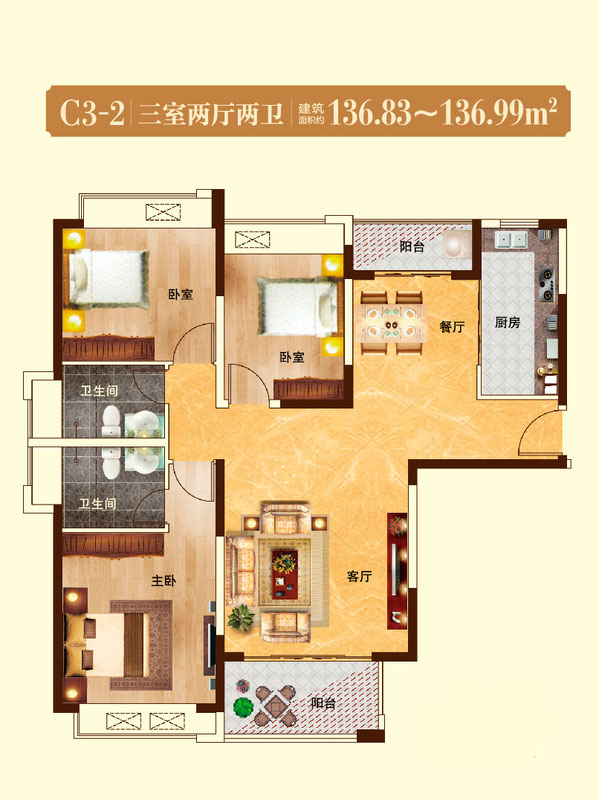 瀚宇天悦C3-23室2厅2卫1厨-136.83㎡
