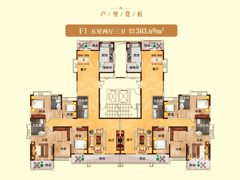 瀚宇天悦F15室2厅3卫1厨-303.69㎡