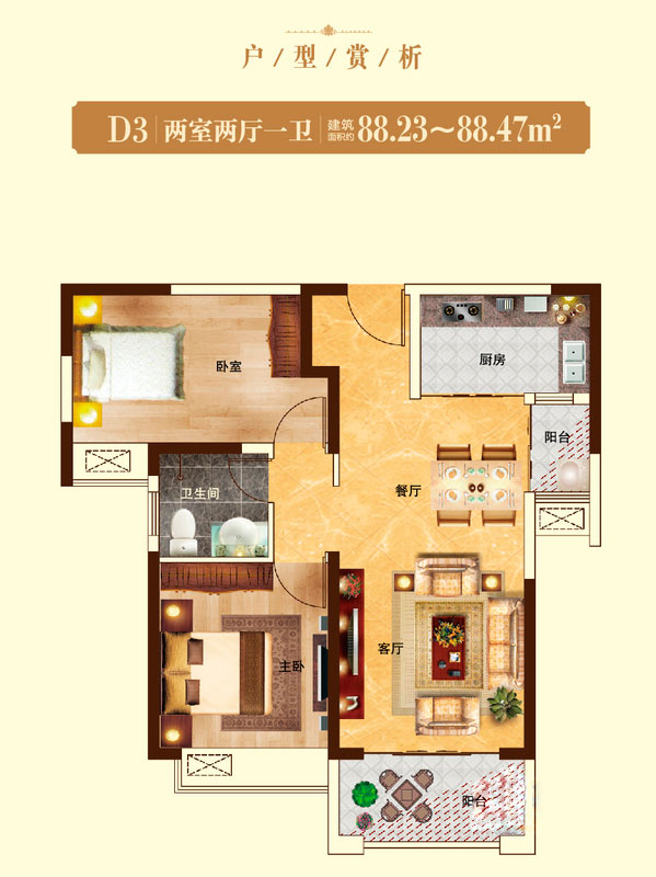 瀚宇天悦D32室2厅1卫1厨-88.23㎡