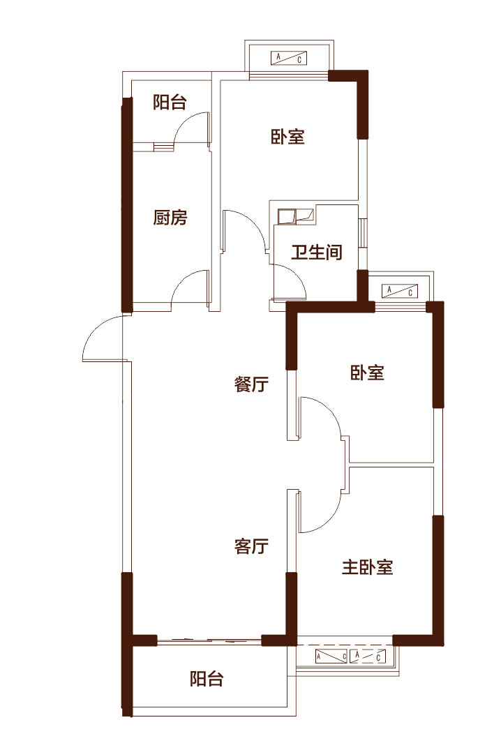 恒大翡翠华庭三室两厅一卫-约93㎡