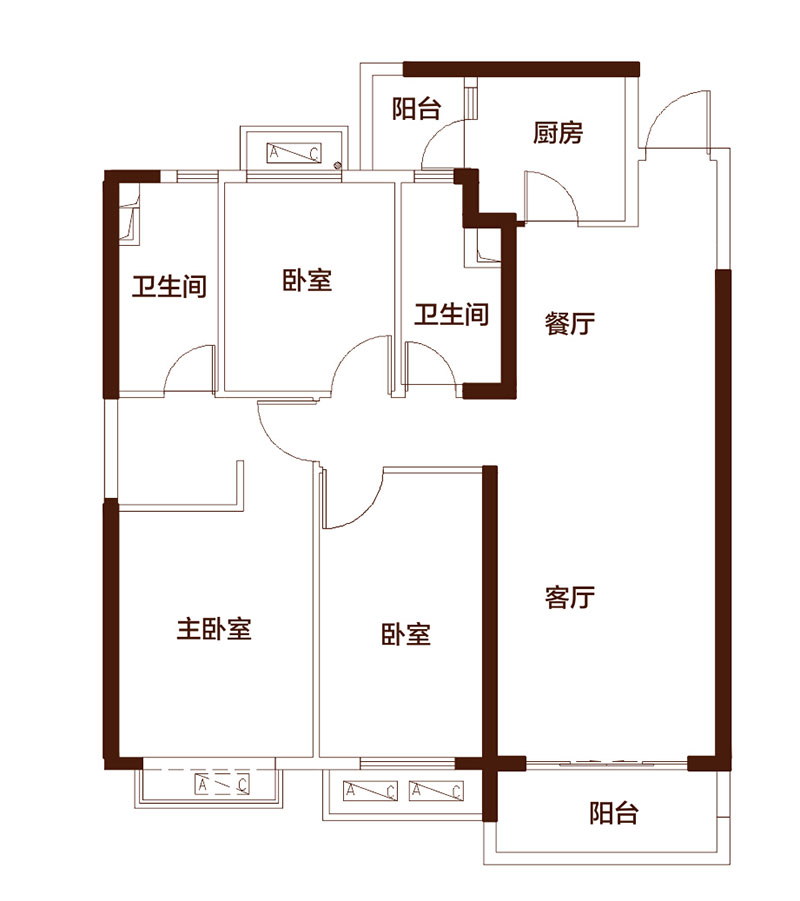 恒大翡翠华庭三室两厅一卫-约112㎡