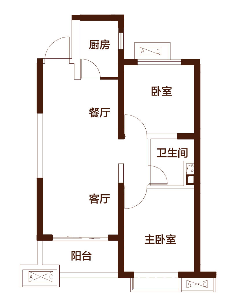 恒大翡翠华庭两室两厅一卫-约74㎡