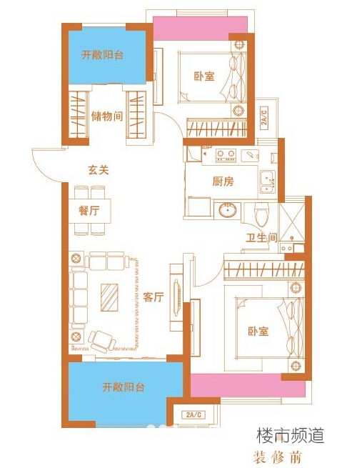 小编点评:这个户型是现在比较流行的魔变概念,那个储物间可以是儿童房,可以是书房,可以是衣帽间,诚然,你要是不嫌它小,当个卧室也不是不可以。小编还有个招儿,因为这个储物间是连着开敞阳台的,要是真想当卧室,可以连着阳台一起装修上,效果很棒的。玄关、餐厅、客厅和阳台是相通的,看起来非常宽敞,一点也没有89平变三房的憋屈感。备注:红色区域是全送的,蓝色区域是送一半的。