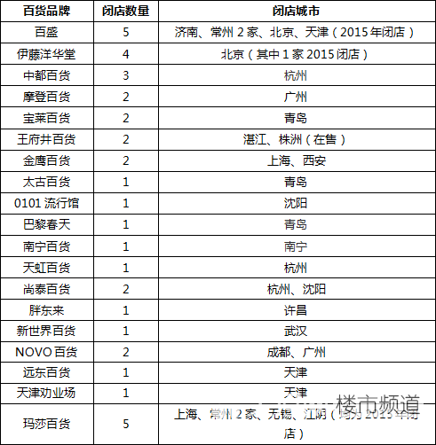 图:2014年1月1日-2015年3月5日百货业态闭店情况