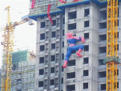银川在建高楼惊现"蜘蛛侠" 市民赞开发商有创意