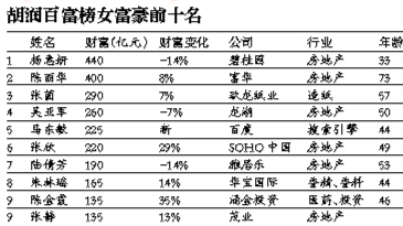 碧桂园执行董事、副主席杨惠妍今年财富440亿元,尽管由于房地产行业表现不佳,杨惠妍财富较去年缩水14%,但是其财富仍居首位。且房地产依然是富豪涌现的领域。前十名女富豪中有6位从事房地产行业。