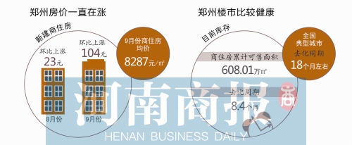 昨日下午,郑州市住房保障和房地产管理局(以下简称郑州市房管局)发布的郑房指数显示,今年9月份,郑州市区商品住宅销售面积62.99万平方米,同比上涨4.95%,销售均价8287元/平方米,每平方米较上月上涨104元。