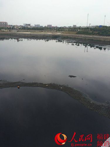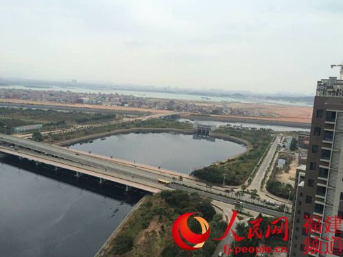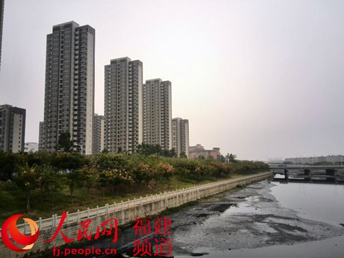 厦门第七批保障性商品房惊现“史上最臭海景房”,轮候购房者望房却步。图为从滨海公寓俯瞰紧邻的埭头溪,溪水乌黑,并发出阵阵恶臭。詹托荣摄
