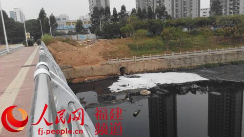 厦门第七批保障性商品房惊现“史上最臭海景房”,轮候购房者望房却步。图为滨海公寓紧邻的工业园区将污水直接排入埭头溪,产生大量白色泡沫,溪水乌黑,并发出阵阵恶臭。詹托荣摄
