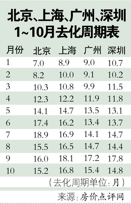 十月北上广深去化周期略降