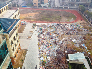 恒大城小区物业办一位工作人员表示,小区内配套学校还没有进行验收,具体什么时间能交付使用还不能确定,“操场上堆积的应该是施工时的建筑垃圾,我们会督促施工方及时清理,至于生活垃圾会尽量做到日产日清。” 文/图 记者 李卓洋