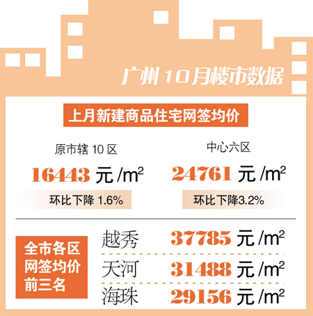 广州房管局发布10月楼市成交数据 全市网签均价环比微降3.9%