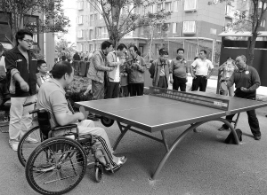 “乒乓球台就在小区的健身广场上,就在楼下边,很方便。现在到球场上打球的人也越来越多了。这种条件,就是一般的商品房小区也比不上啊。”对于米家崖小区居民杨建萍来说,她最大的兴趣爱好是打乒乓球,每天只要有时间就会抽出空来挥上几拍。11月10日下午,杨建萍一边打乒乓球,一边说。