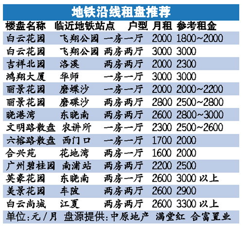 此外,碍于中心区域的房屋租金高企,近年租客外流至郊区的现象有所增多。“洛溪板块周边交通便捷,设有地铁洛溪站,而且租金便宜,性价比高,吸引了不少在市中心工作的租客。”中原地产吉祥北二分行资深营业经理欧伙文介绍,今年以来,该板块的租赁市场都较为火爆,板块内的楼盘租金亦有不同程度的上调。譬如位于洛溪板块的吉祥北园,现时两房租金为2000~2200元/月左右,较去年同期上涨了10%~20%。