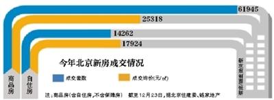 随着首个自住房金隅・汇星苑在今年6月底选房,自住房对新房市场的影响自今年7月开始逐渐显现,自住房因为不愁客源集中签约,10月自住房网签量曾占据新房一半比例。根据统计,截至12月23日,全年自住房签约1.43万套,占据新房(不含保障房)四分之一。而在价格上,包含新房的均价全年约25318元/平米,而自住房均价仅为17924元/平米。自住房对于拉低新房价格有明显作用。