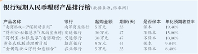 平安银行与南京银行日前发行的产品,收益率分别高达6.7%和6.4%。其中,平安银行推出的“财富和盈资产管理类2014年851期”以及其他两款平安夜、财神节专属产品,预期年化收益率都为6.7%,同时起点也并没有走高,都为5万元,期限在30天-40天不等,同时该行还推出了预期年化收益率为6.2%-6.65%的多款产品。