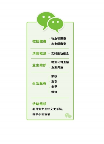据介绍,目前包括中奥、保利、中信、佳兆业等大型物业公司均在探索如何通过微信智慧社区模式打造更优质的物业服务。