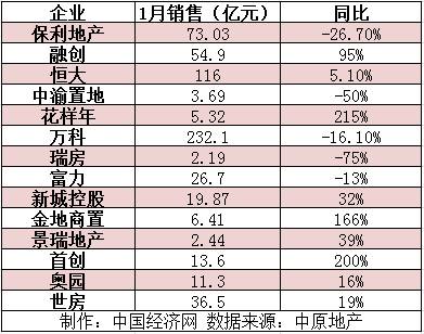 14家上市房企公布1月业绩 万科保利富力同比下降