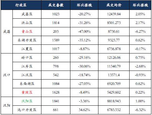 浦江(中国)RMAS房地产市场分析系统的数据统计显示,2015年1月武汉市主城区(12大主城区和东湖风景区)有成交项目430个,成交均价8771元/平方米,较2014年12月下跌215元/平方米,环比下降2.39%,同比上涨8.21%;总销售套数12504套,较2014年12月下降3352套,环比下跌21.14%,同比上涨68.68%,平均每日销售约403套。