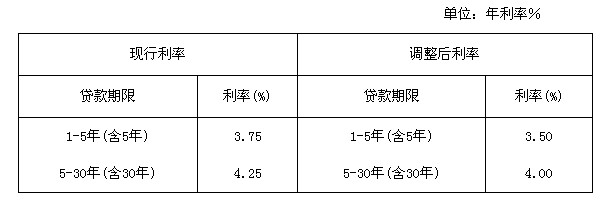 二、个人住房公积金贷款各期限档次利率调整如下表: