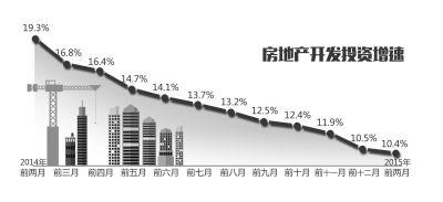 数据显示,2015年前两个月全国房地产开发投资8786亿元,同比名义增长10.4%,增速比去年全年回落0.1个百分点。其中,住宅投资仅增长9.1%,低于整体水平。