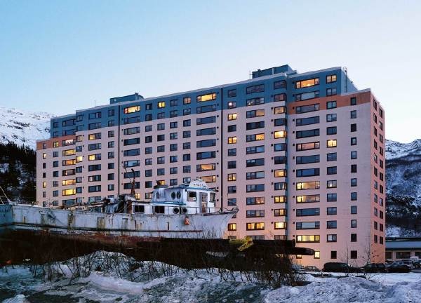 这栋楼的前身是军营。冬天,这里的降雪会厚达250英寸(约6.35米),风速为每小时60英里(约96.6千米)。这样的恶劣天气促使居民的日常需求都尽量在楼里解决,因此楼里设施一应俱全,有警察局、诊所、教堂和自助洗衣房等。楼里还设有旅店,可供观光游客居住。不过,学校并不在楼里,因为天气恶劣,孩子们来回都得经过一条地下通道。 当地人自称这是个关系异常亲密的地方,大家可以穿着睡衣和拖鞋走来走去,即使是工作的时候。他们也随时可以敲警察局长的门,学生们可以在老师家的餐桌上写作业,以便随时得到老师的辅导。