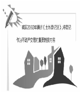 在英国,土地承载的不动产从属于土地,其不动产登记制度实为土地登记制度,对于土地上建房屋仅在土地权属证书中予以标明,并不颁发专门的房屋权属证书。